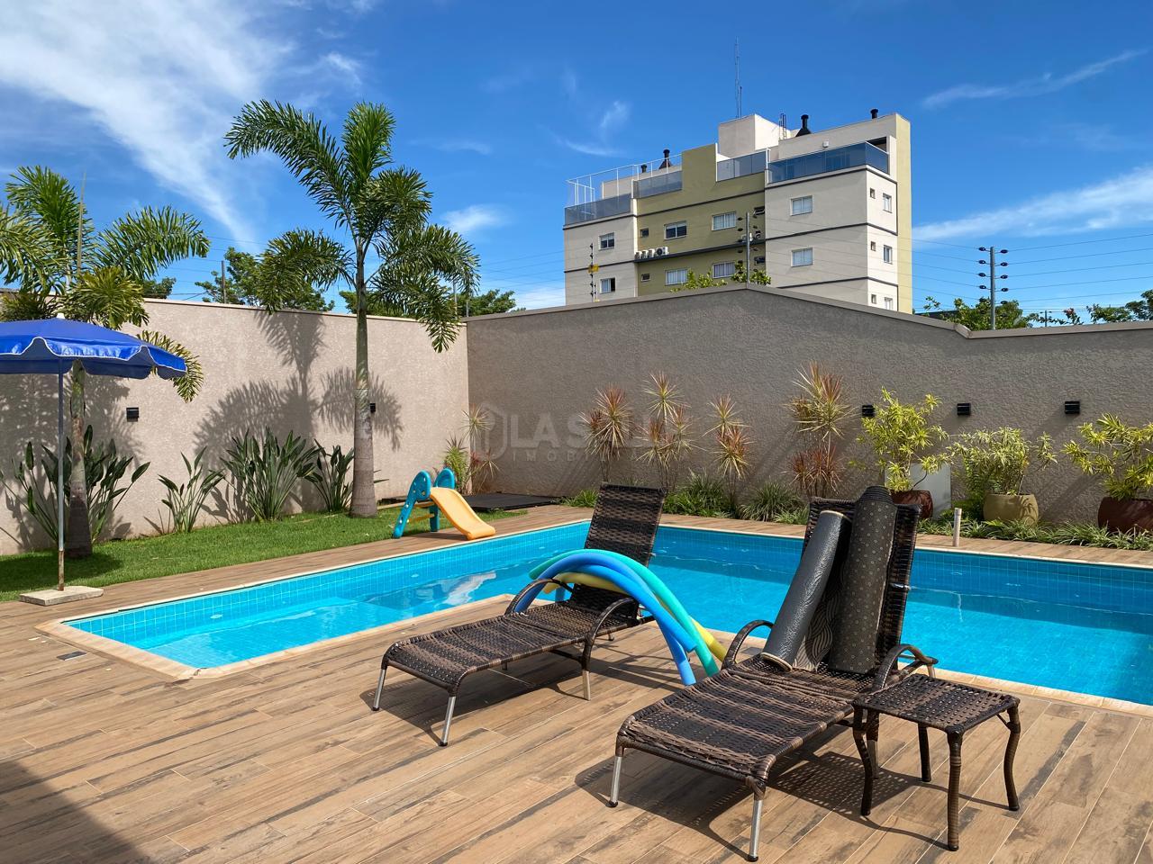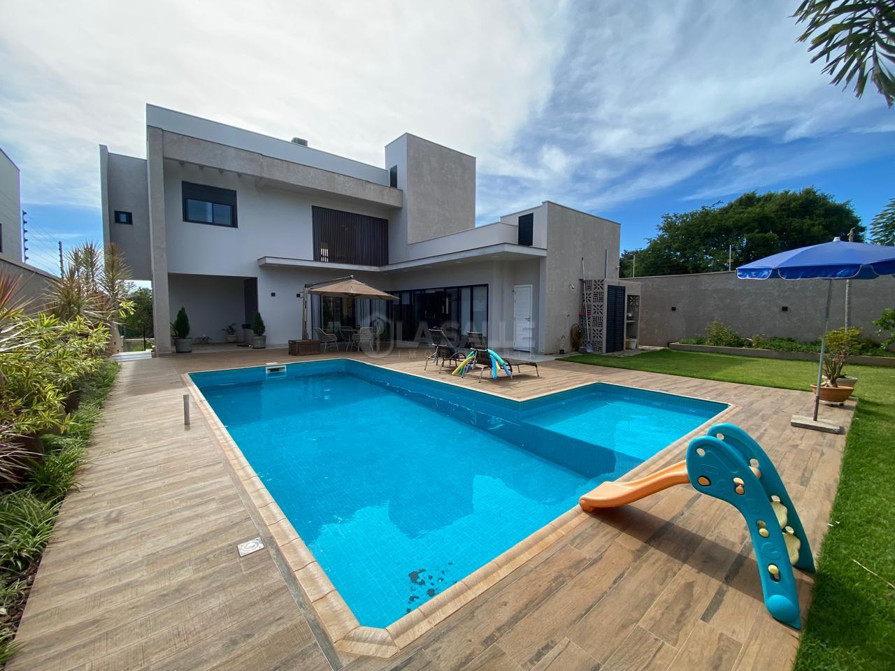 ** 2° Pavimento: Hall de entrada; Lavabo; Sala de Estar; Sala de TV; Escritório; Cozinha em conceito aberto; Banheiro Social; Área de Serviço; Conta com ampla área externa com deck de madeira, área gourmet, piscina.
