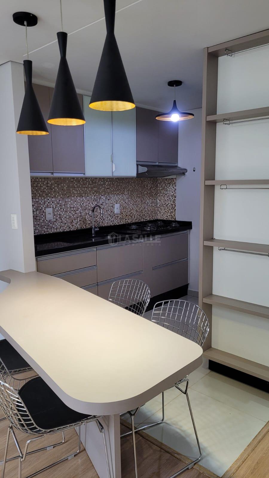 Conta com 2 quartos, banheiro social, sala de estar, cozinha com móveis planejados e eletros (fogão cooktop, exaustor e forno elétrico), área de serviços e 1 vaga de garagem descoberta. Móveis planejados em todos os ambientes, quartos mobiliados sendo um com ar condicionado, excelente decoração e localização privilegiada, a poucos metros da Pratti Donaduzzi.