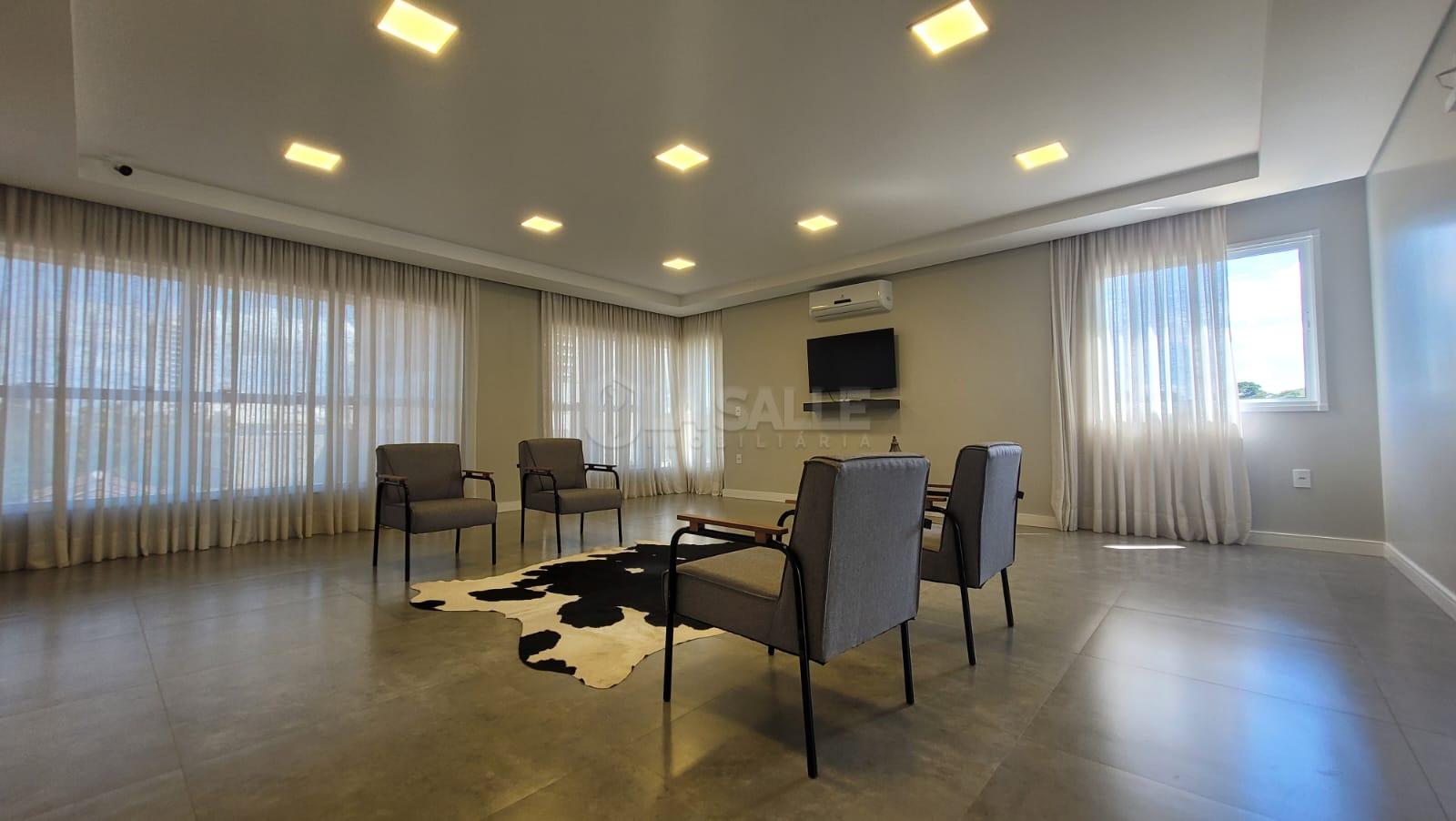 Conta com 3 dormitórios, sendo 1 suíte, banheiro social, sacada com churrasqueira, ampla sala de estar com vista para o lago, sala de jantar e cozinha integradas, lavanderia e 2 vagas de garagem (gaveta). Prédio com 2 elevadores (social e serviço) e box de garagem individual para cada unidade, trazendo maior praticidade e comodidade. Alto padrão construtivo e de acabamentos, infraestrutura de lazer completa com piscina e deck, salão de festas mobiliado, academia, sala de jogos, brinquedoteca, playground, solarium com pergolado, além da localização privilegiada a poucas quadras do Lago Municipal.