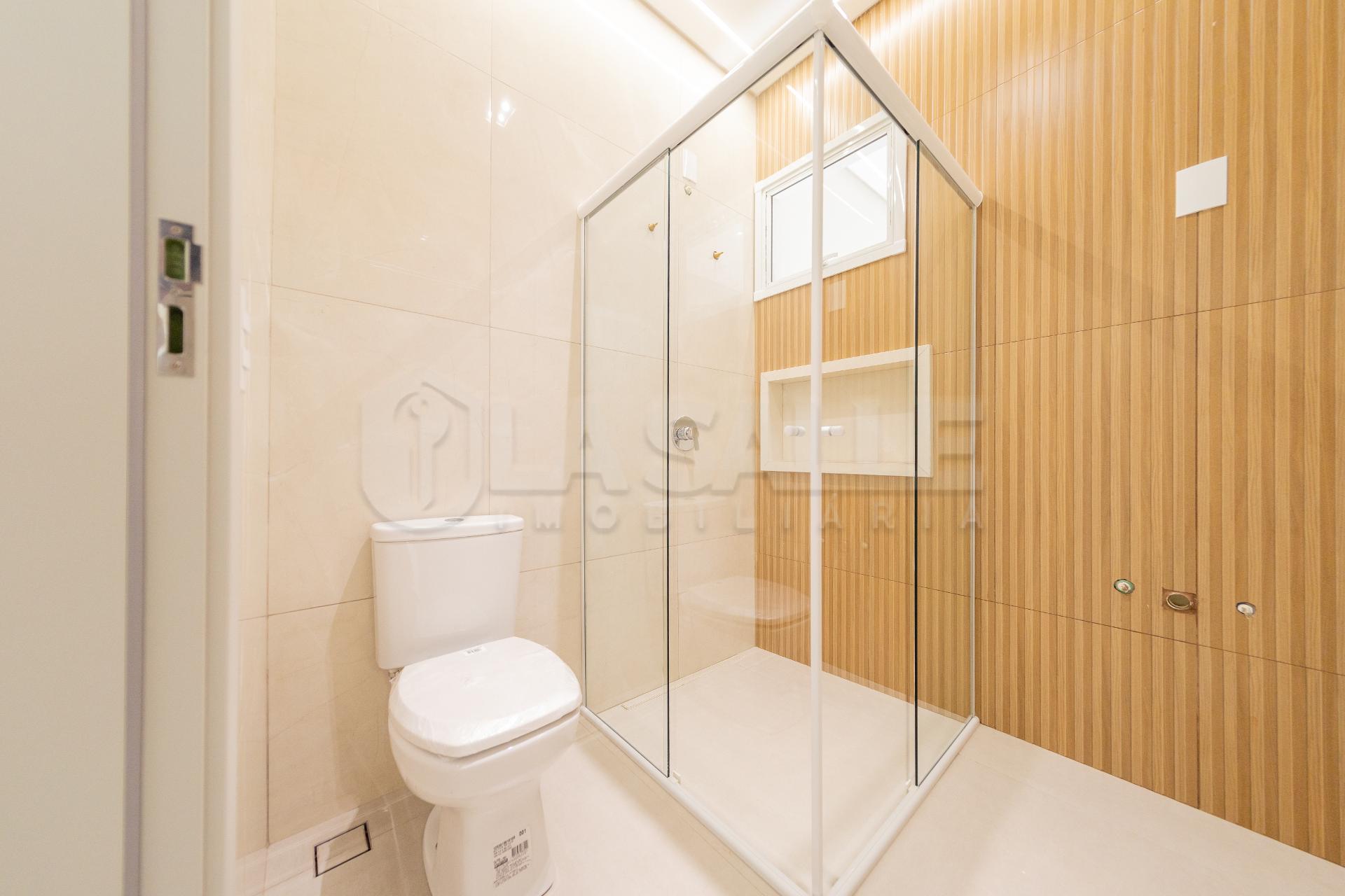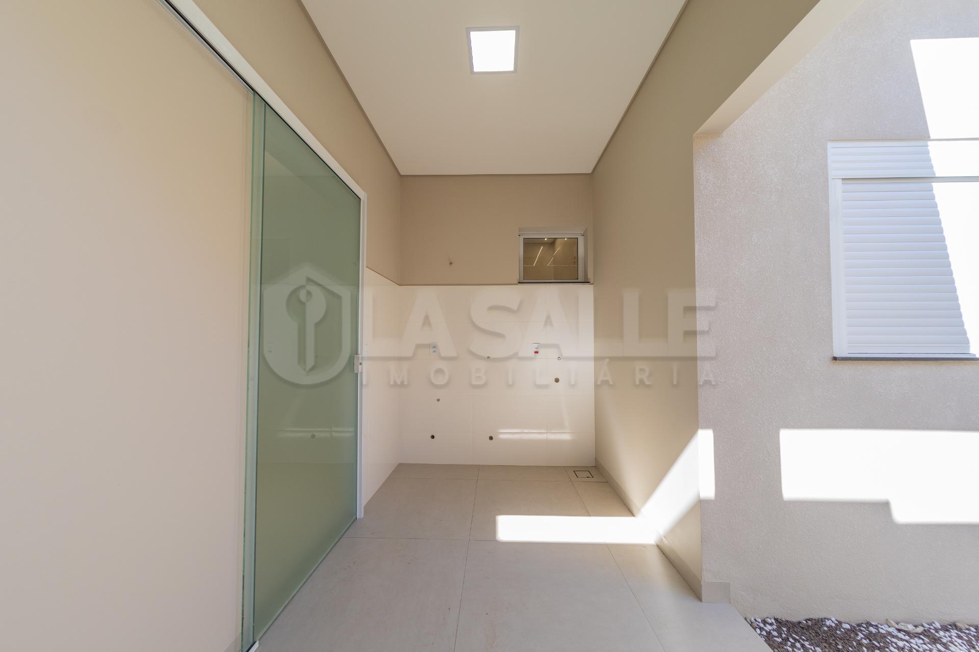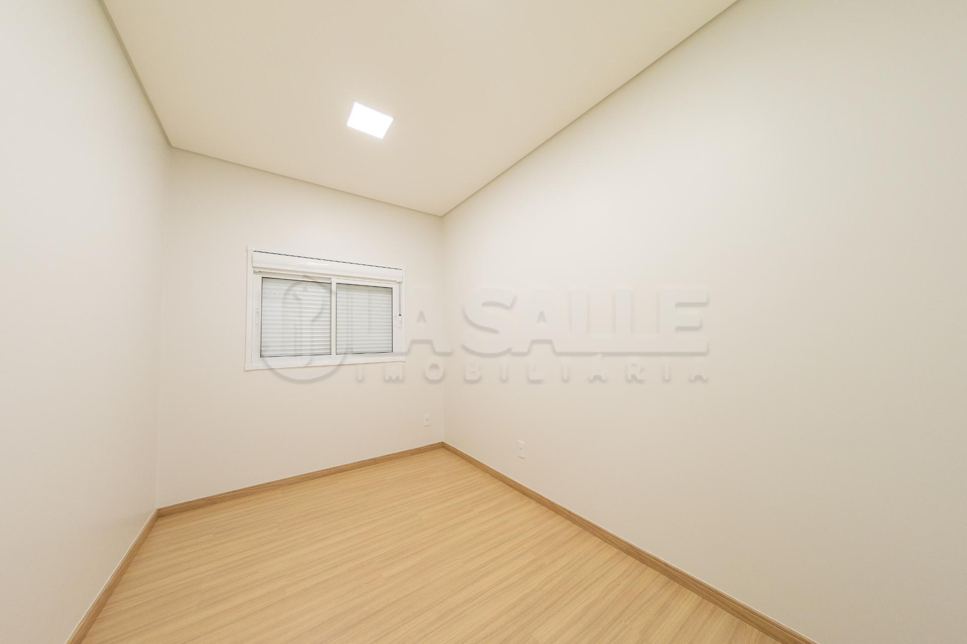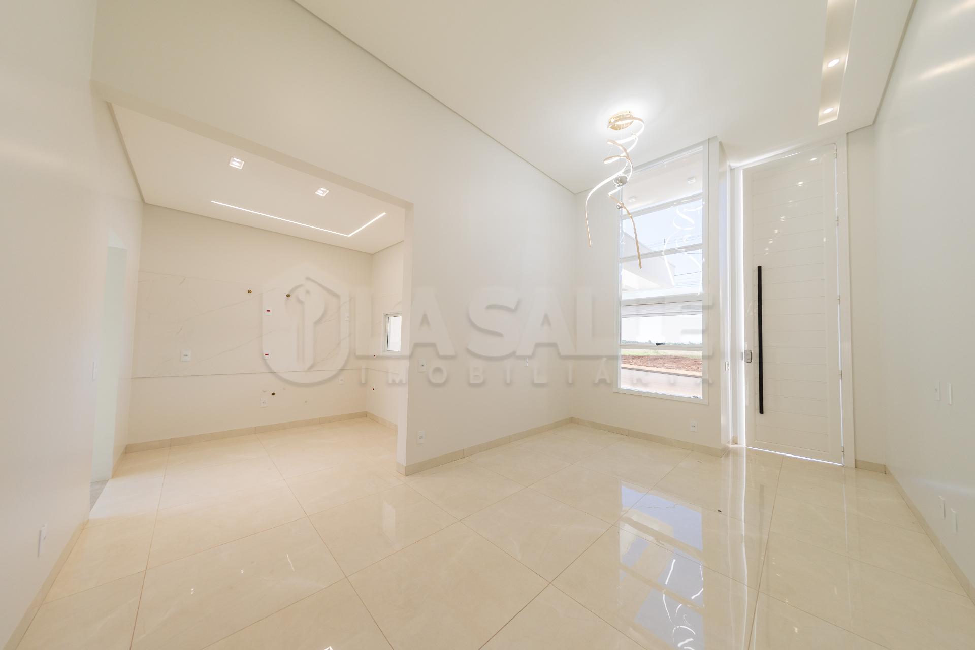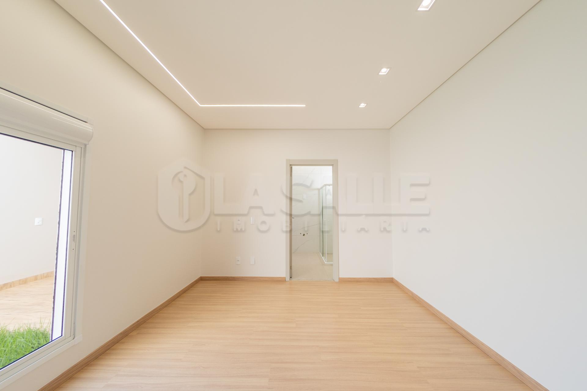 Fachada diferenciada, com design exclusivo Porta com acabamento em alumínio ripado, fechadura eletrônica e puxador amplo Possui tubulação para água quente; Iluminação em Led; Lustre na sala de estar Fachada em pele de vidro Passagem lateral, que facilita a entrada pela lavanderia e também acesso a área gourmet nos fundos com churrasqueira e lavabo; Janelas em alumínio com veneziana integrada e na suíte com acionamento elétrico. Portão da frente em rolo
