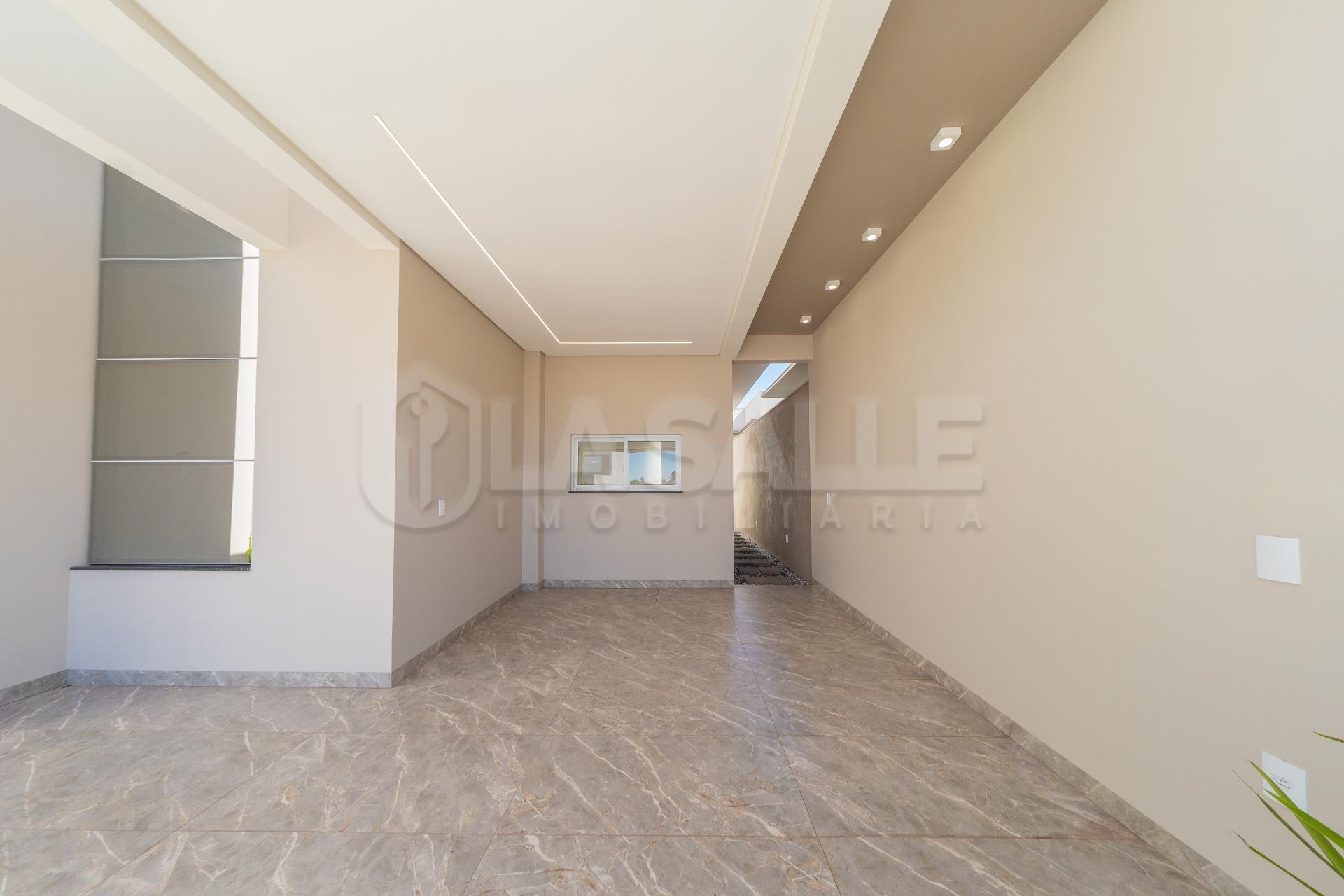 Terreno 180m2 - Área construída de 126m2 + marquises Imóvel conta com: - 2 quartos + 1 suíte com piso laminado - Sala de estar/jantar com pé direito e cozinha integrada! - 2 vagas de garagem paralela